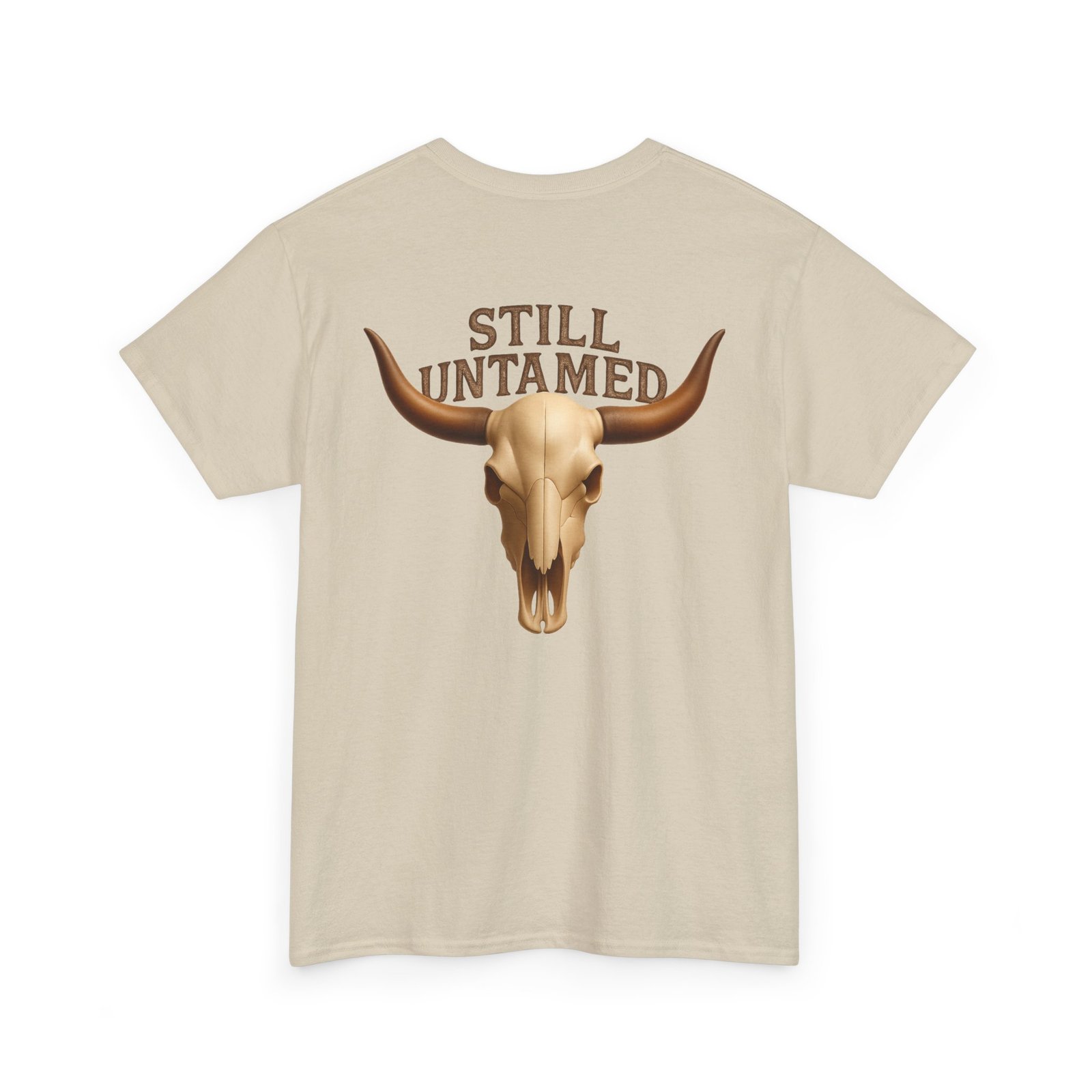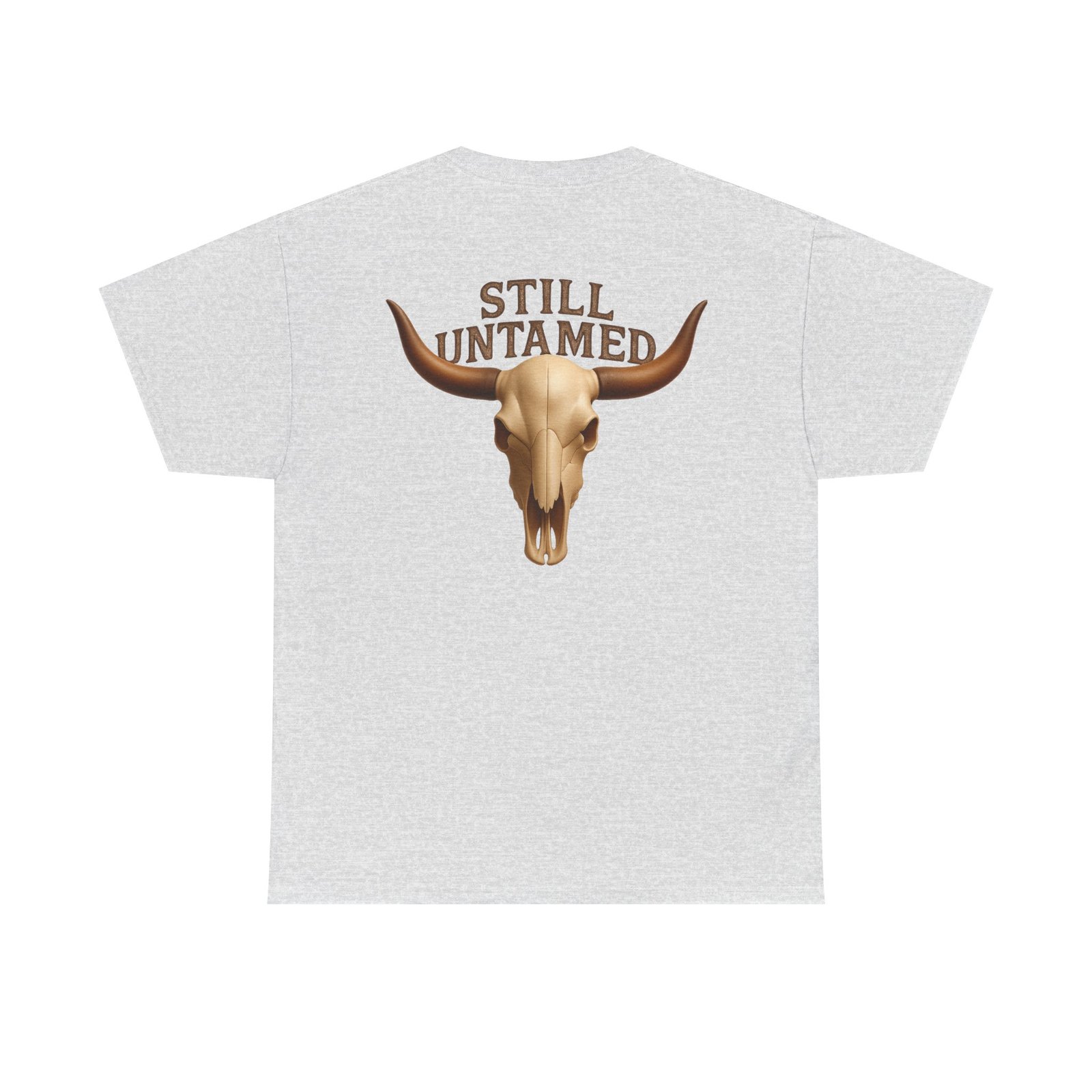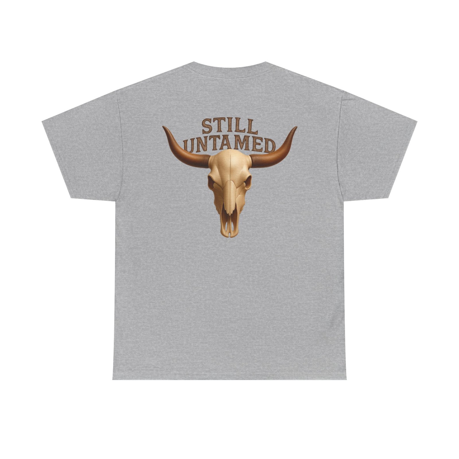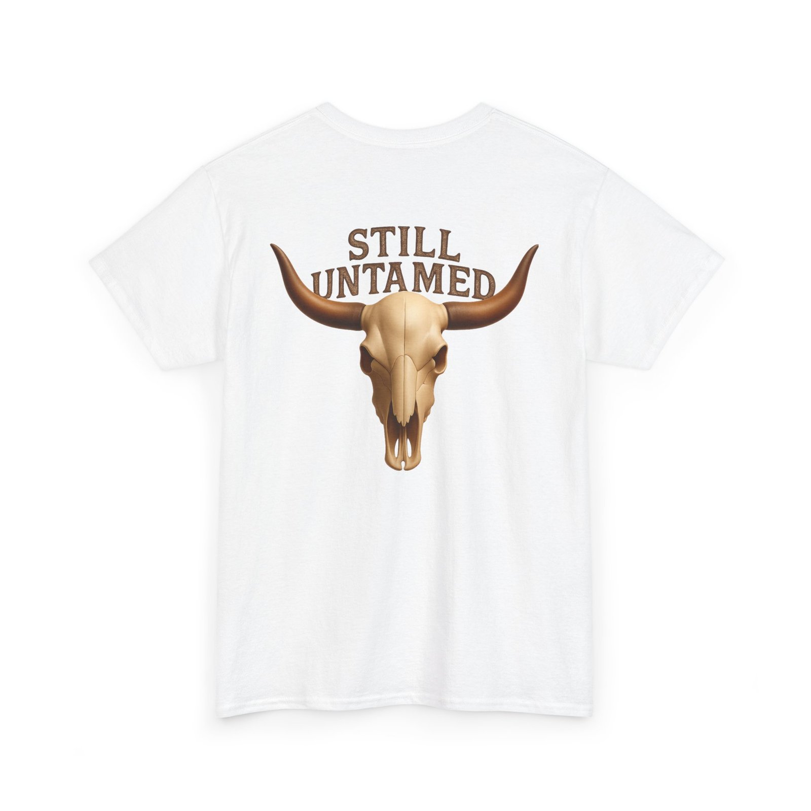 Striking longhorn skull design with “Still Untamed” slogan