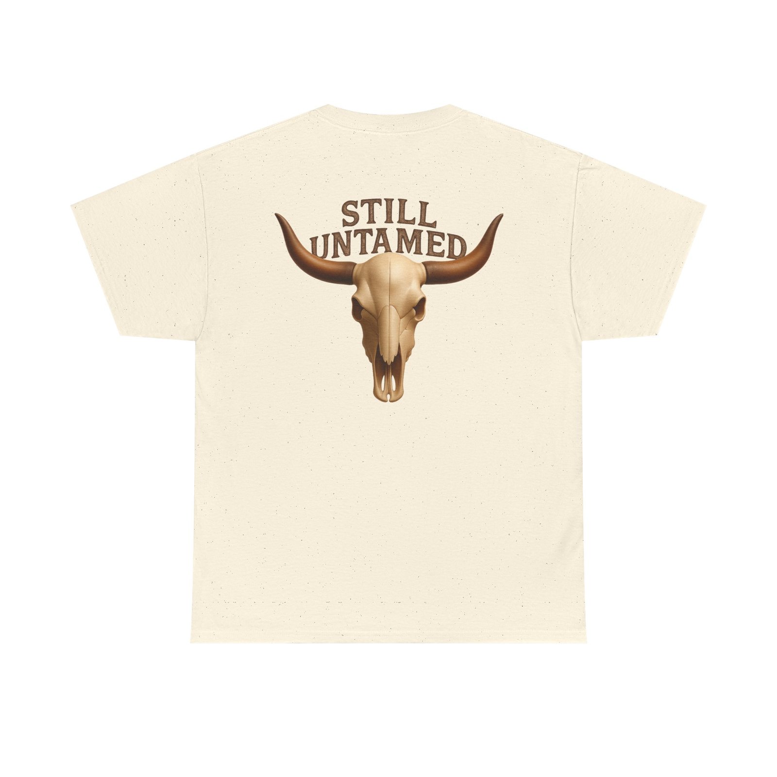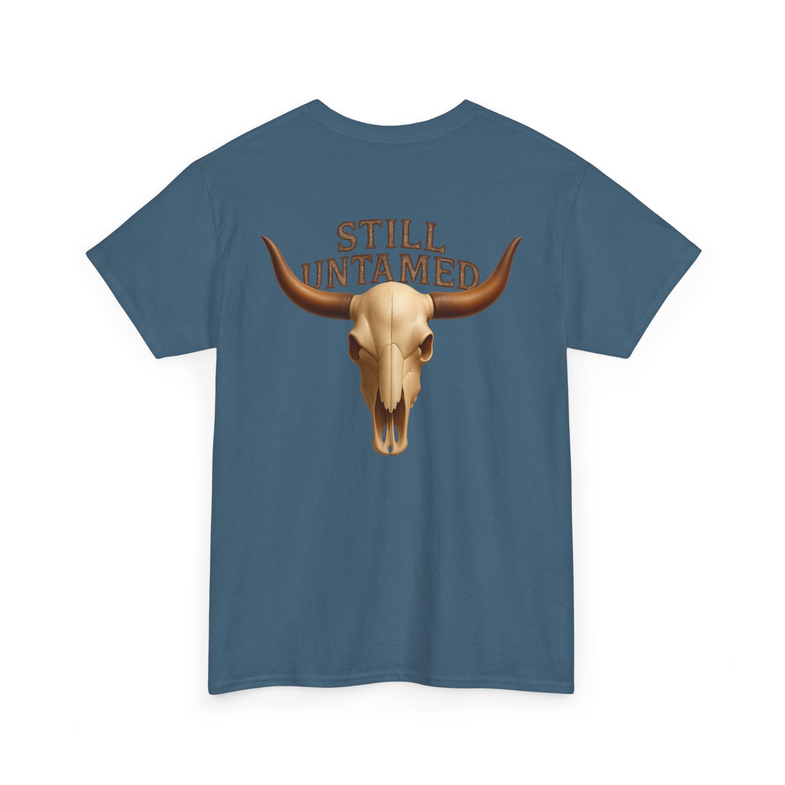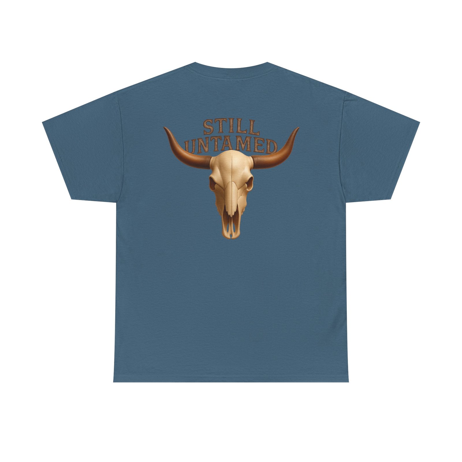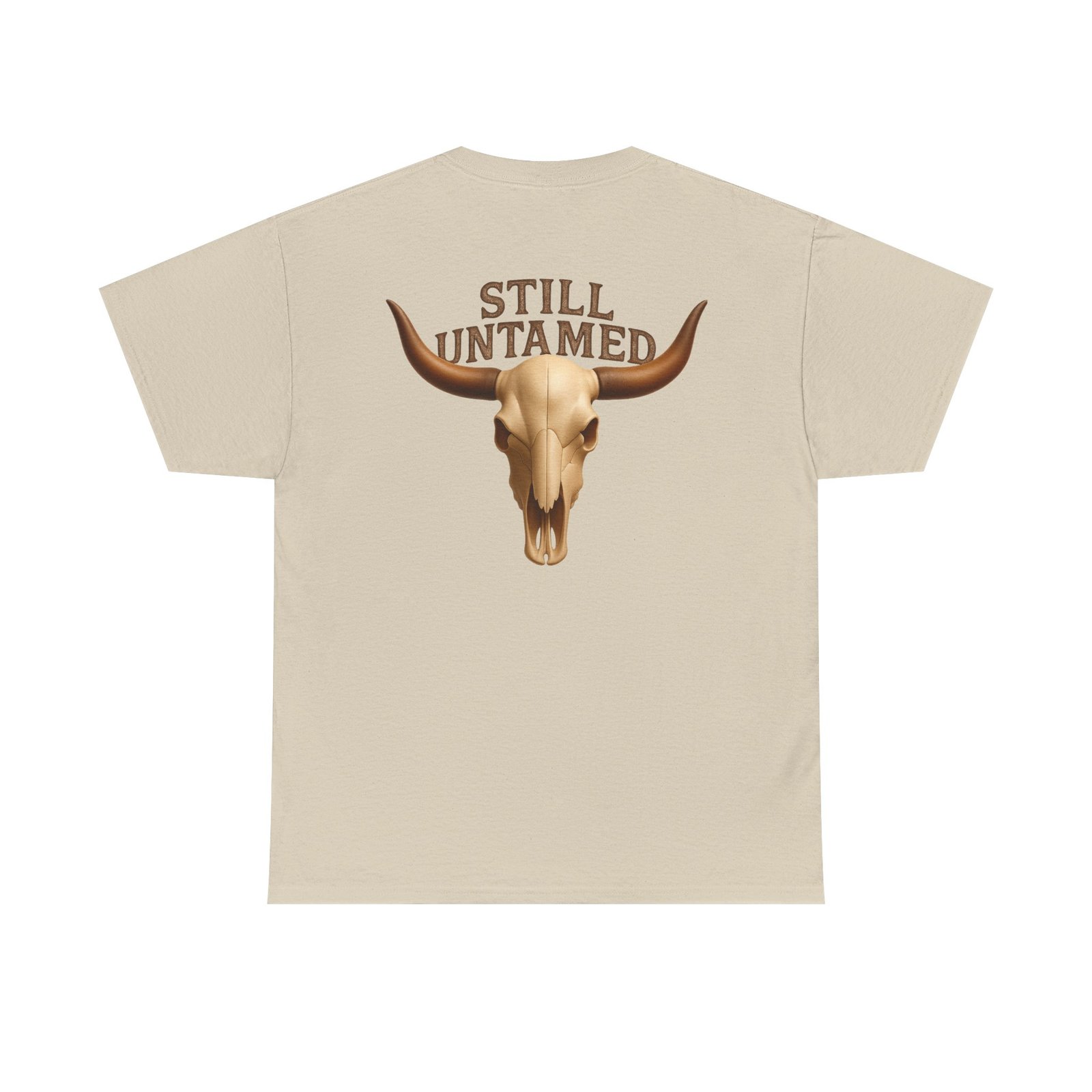 Striking longhorn skull design with “Still Untamed” slogan