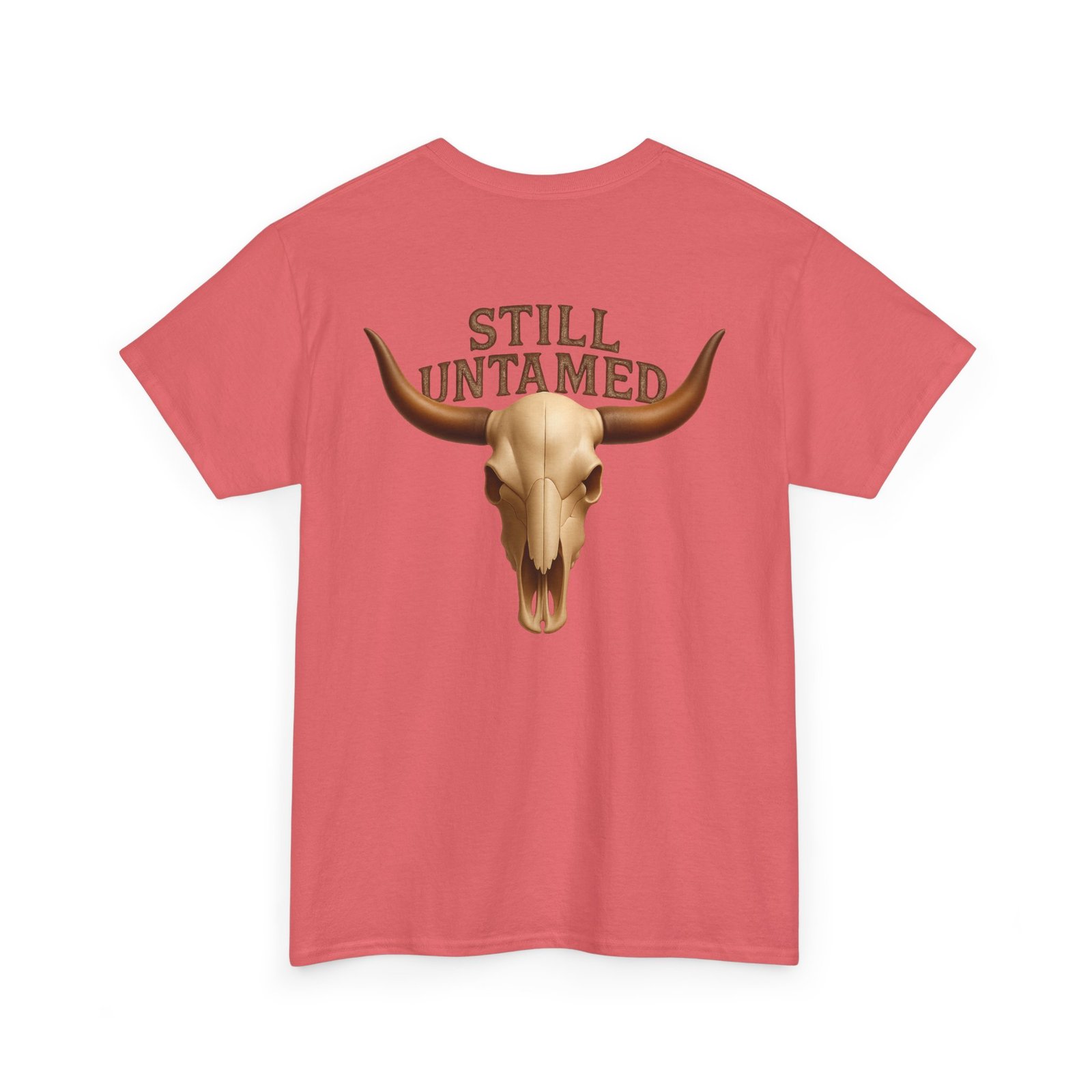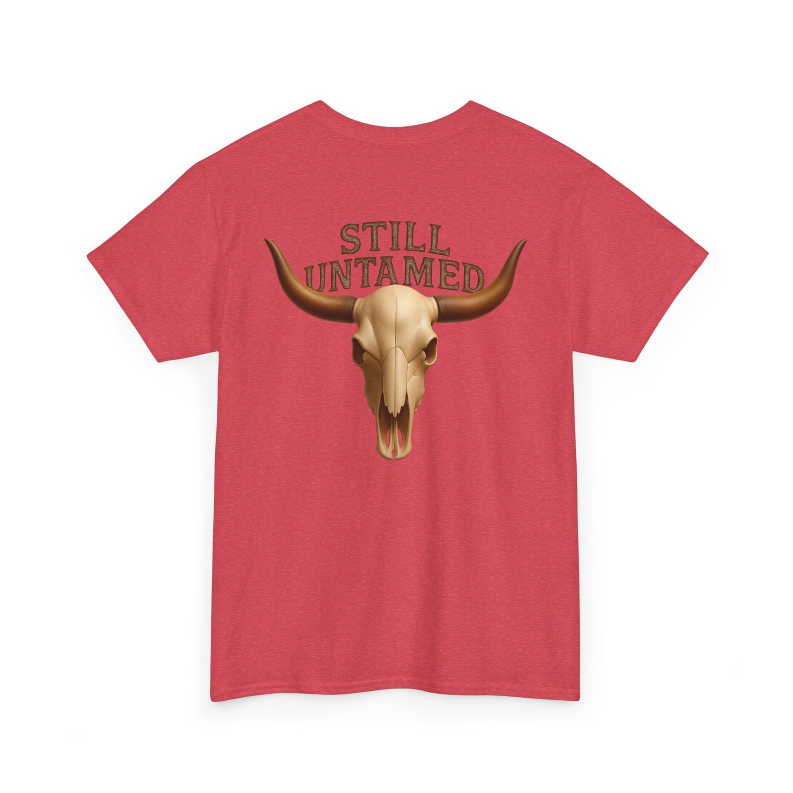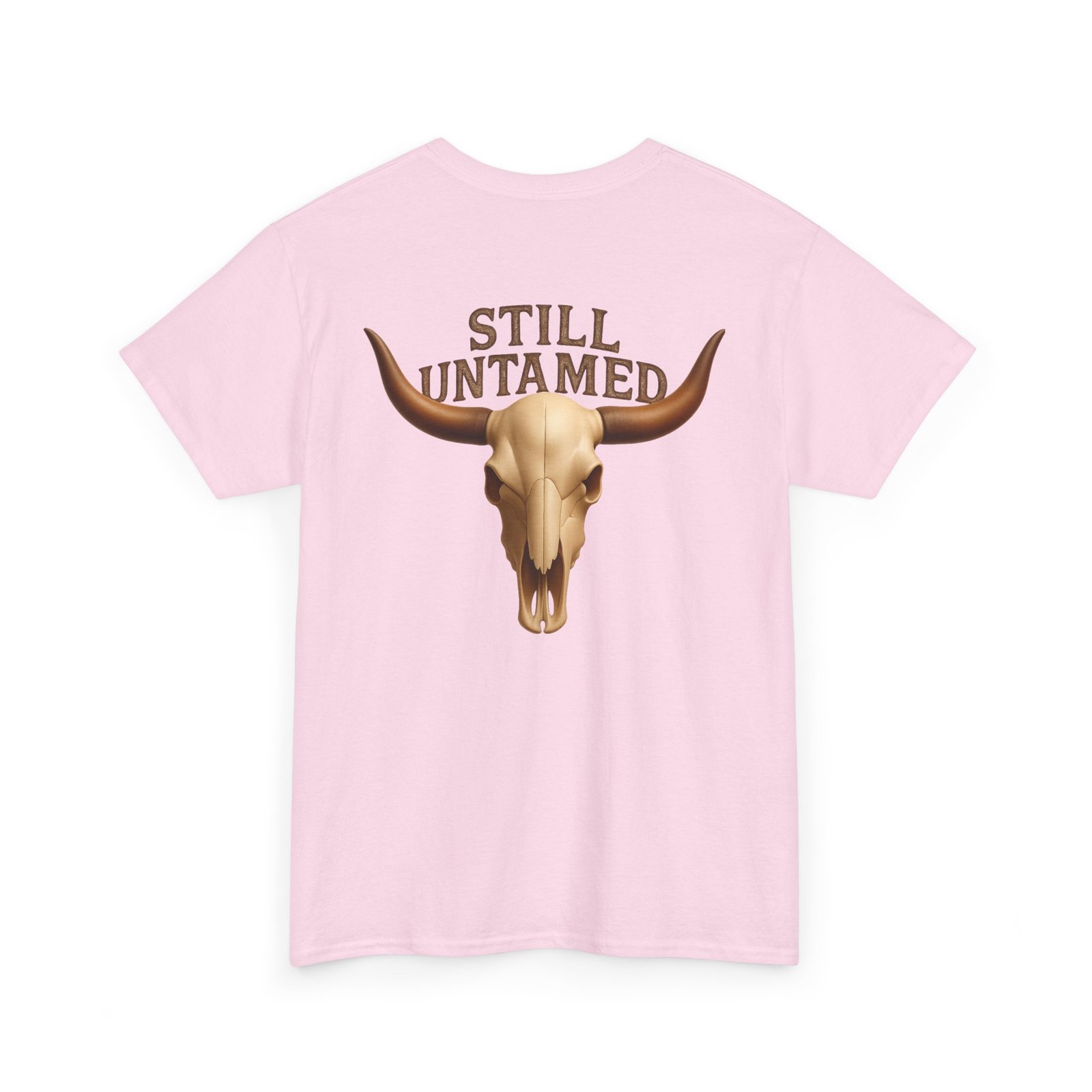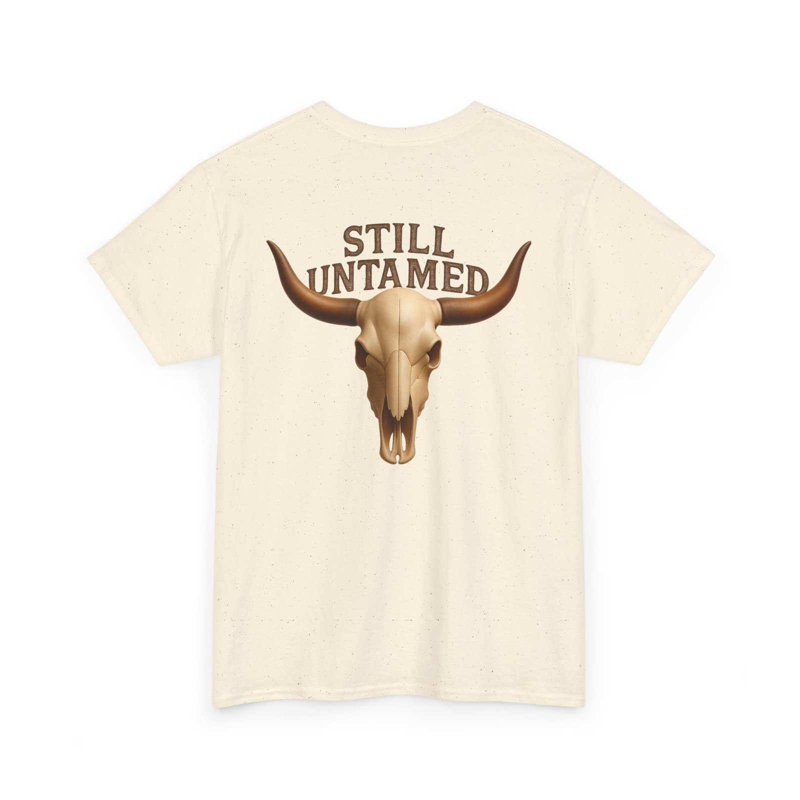 Striking longhorn skull design with “Still Untamed” slogan